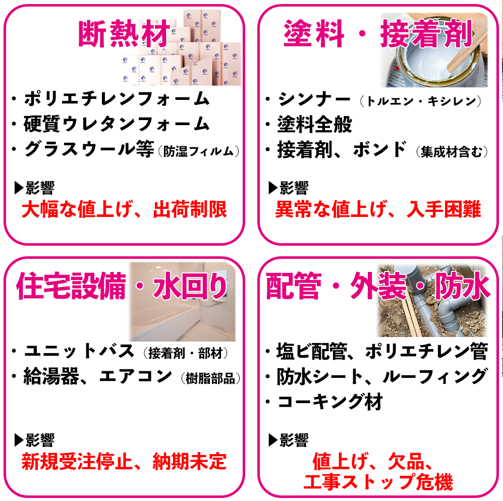 最近ニュースでよく耳にする「物価高騰」や「資材の納期遅延」。実は住宅業界にも「ナフサショック」として深刻な影響を及ぼしています。