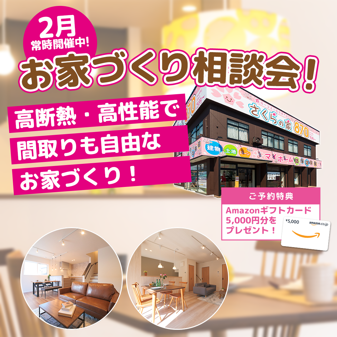 【2月常時開催】高断熱・高性能で間取りも自由なお家づくり!【さくらの家】