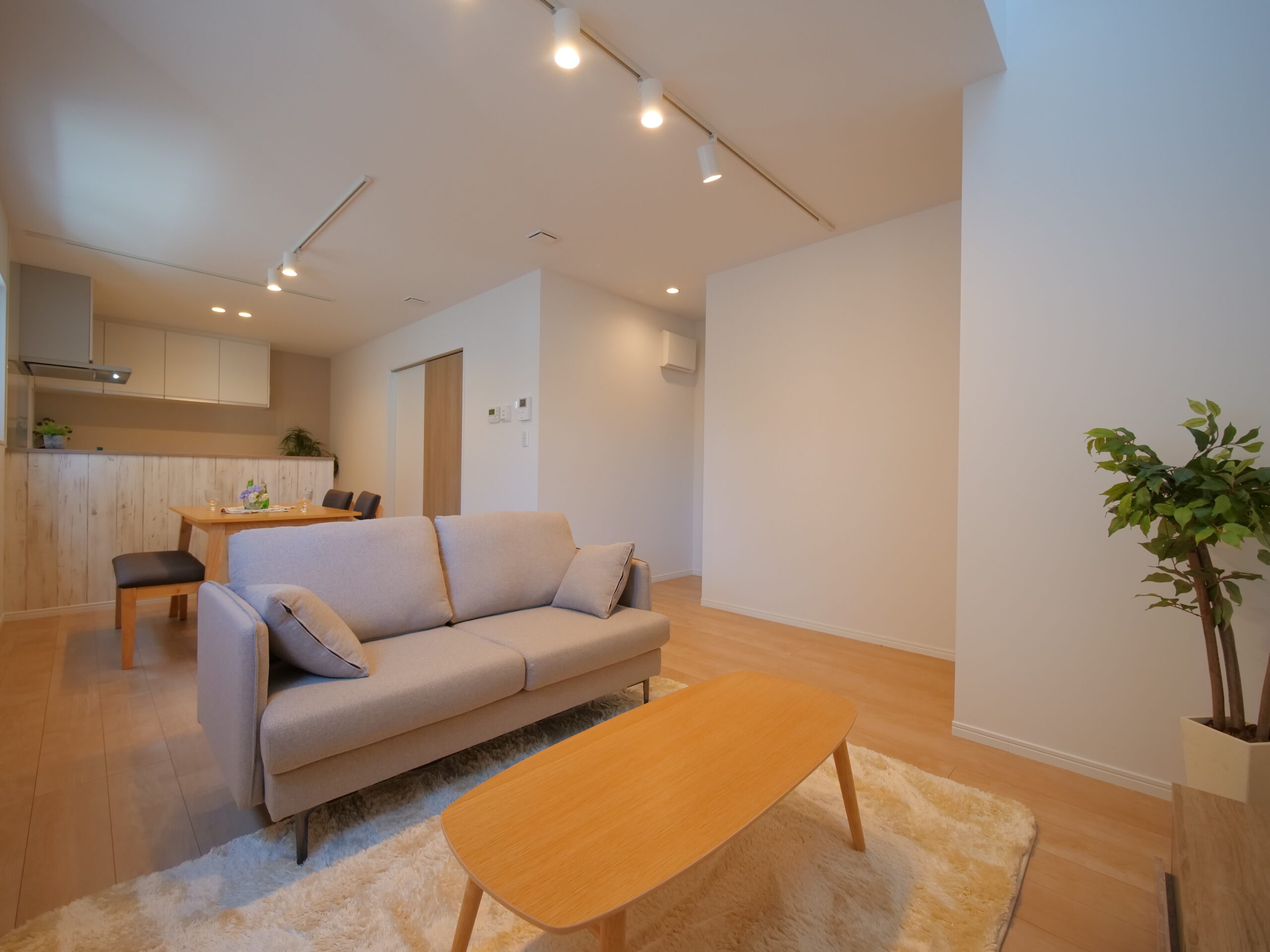 ▼吹き抜け付き15帖のLDKで明るく開放的な空間に!