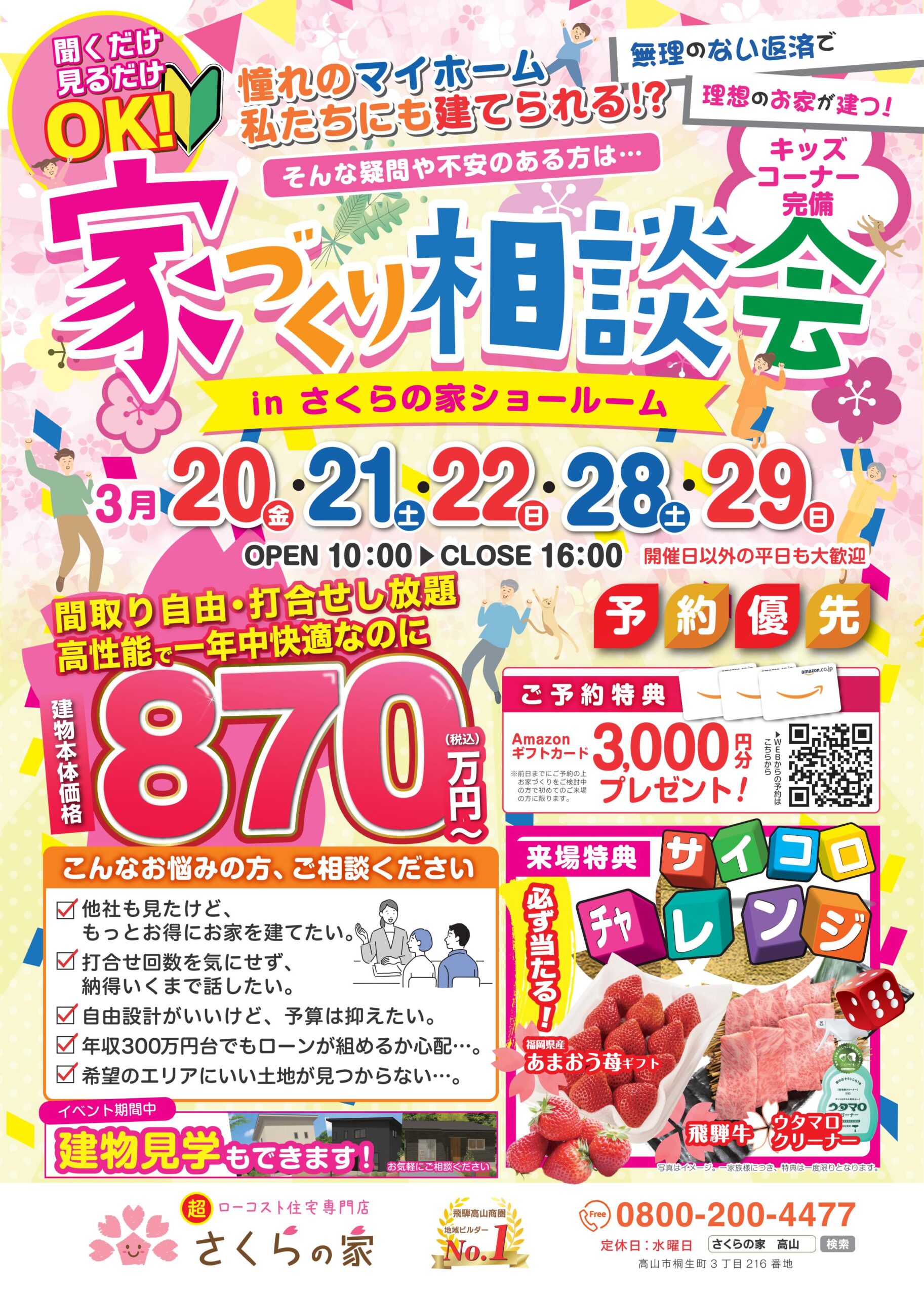【3月限定】家づくり相談会!【無理のない返済で理想のお家が建つ!】